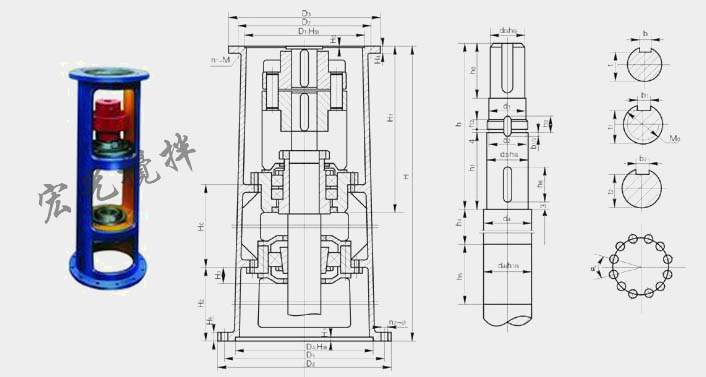 注:图示所注“h”仅与本样本BLD、LC-Ⅱ、DC-Ⅱ系列减速机相配,如选用其他型号或其他厂家减速机,“h”需另行计算。增高后的LSJ型机架其下部空间高度可容纳205、206或207型双端面机械密封。