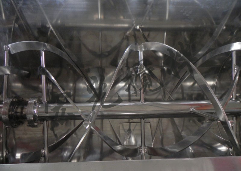 4、正反旋转螺条安装于同一水平轴上,形成一个低动力高效的混合环境。平稳的混合过程降低了对易碎物料的破坏,加装飞刀结构亦起破碎作用,亦可加装喷液系统。将液体和粉体充分均匀混合。