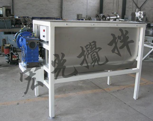 卧式螺带混合机由U形容器、螺条搅拌叶片和传动部件组成;螺条状叶片一般做成双层或三层,外层螺条将物料从两侧向中央汇集,内层螺条将物料从中央向两侧输送,形成对流混合。螺条混合机对于粘性或有凝聚性的粉粒体的混合以及粉粒体中添加液体及糊状物料的混合有良好的效果,筒盖可做成全开式门,以便于对设备进行清洗替换产品。