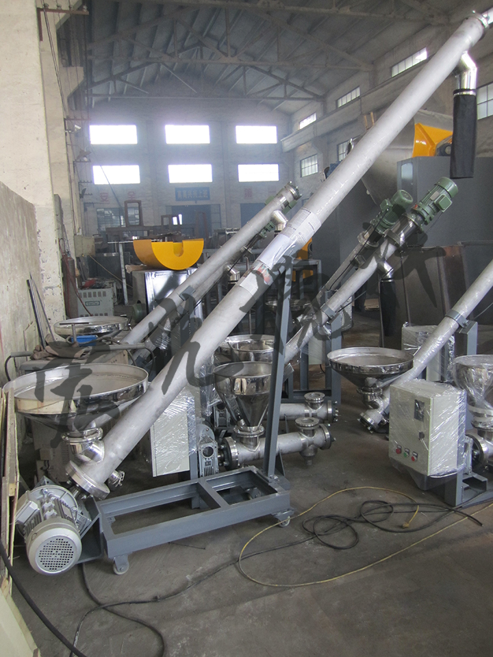3、它的螺旋体直径小、转速高、输送量大,适用于倾斜和垂直输送。