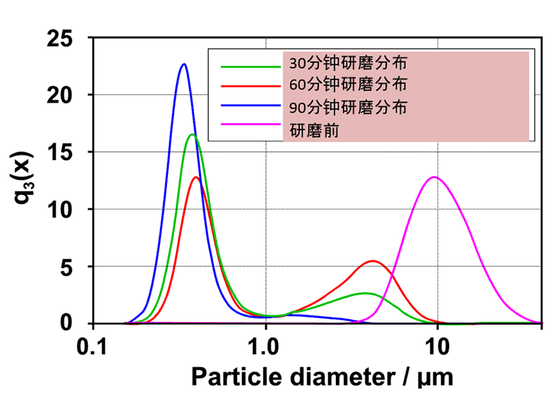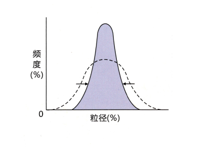 粒度分布![]() 相比传统磨机,即使在相同的平均粒径,它可以得到集中的粒度分布。 |
