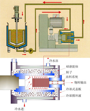 可实现低温研磨 缩短浆料在磨腔内的滞留时间,有效抑制温度上升。通过循环冷却水的冷却,可实现低温研磨。 |