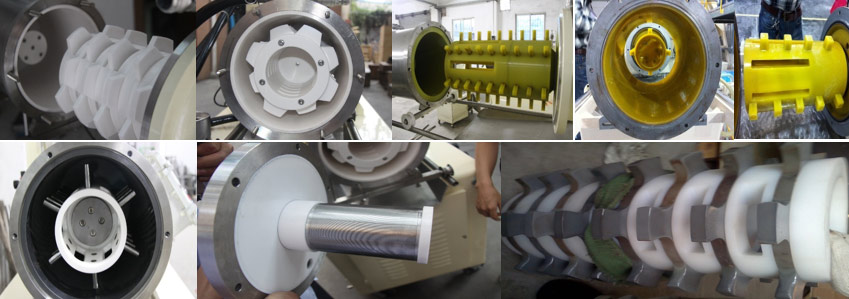 出料面积大,是盘式和涡轮式机器的2-4倍,物料通过性好,不易堵塞机器,在生产有膨胀性物料时优点突出。冷却换热效果好。桶体,转子,出料器三位冷却,冷却面积是盘式及涡轮式设备的1.3-1.5倍,有效控制物料的升温问题。